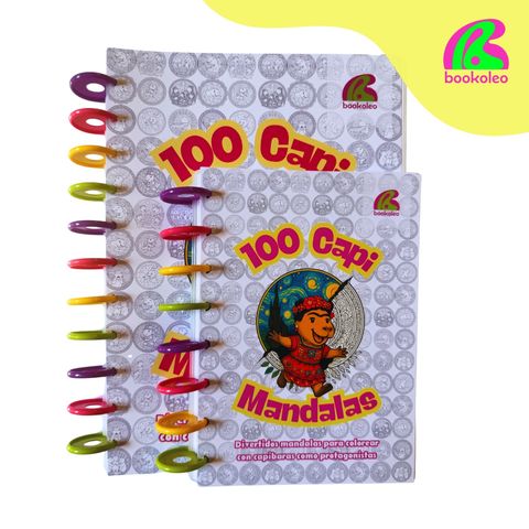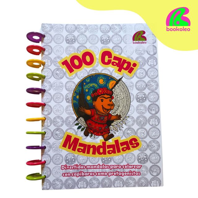 100 Capi Mandalas reúne cien mandalas con capibaras en escenas divertidas, dulces y sorprendentes: desde capis intrusos en cuadros de Frida Kahlo o de Van Gogh, hasta astronautas, cocineros, deportistas y familias de capis realizando diferentes actividades.