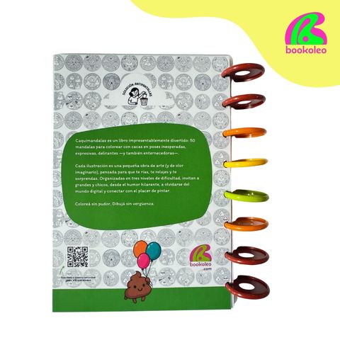 Contenido: 100 mandalas con caquitas en escenas desopilantes: desde obras de arte hasta viajes espaciales, cocinas, deportes, profesiones, meriendas con amigos y más.