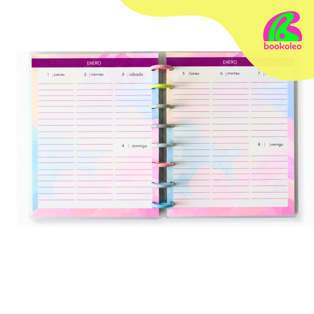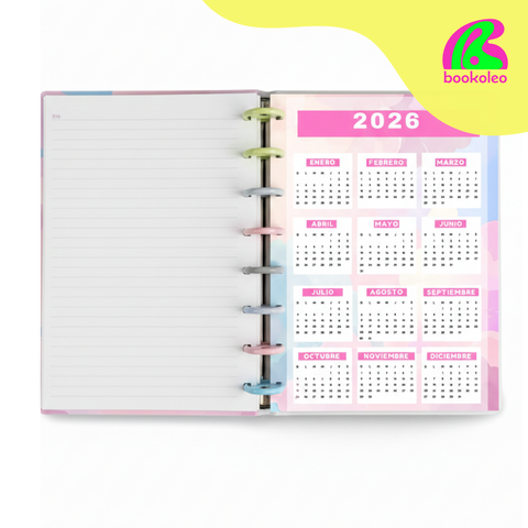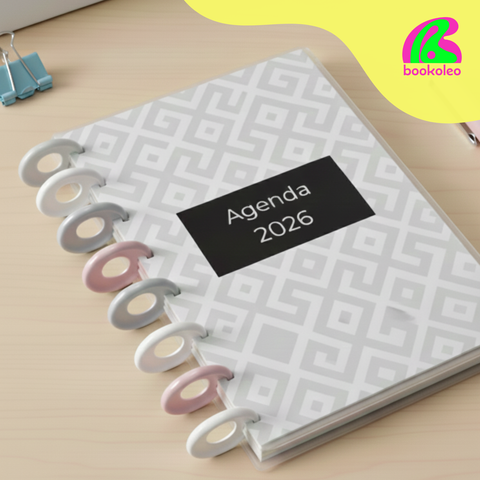 Organizá tu vida de forma práctica y hermosa con la nueva Agenda 2026 de bookoleo, diseñada con el exclusivo sistema de discos inteligentes que te permite abrir, cerrar y mover hojas sin dañarlas. Personalizala a tu gusto y hacela verdaderamente tuya. Una agenda pensada para acompañarte todos los días del año.