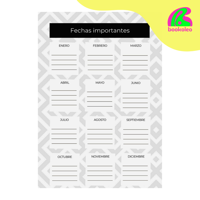 Con espacios amplios para anotar reuniones, tareas, recordatorios y objetivos.