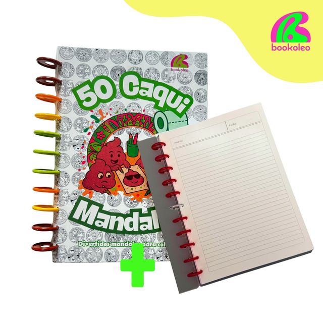 Incluye el libro Caquimandalas —50 mandalas delirantes con cacas expresivas, tiernas y absurdas— y un repuesto rayado A4 de 100 hojas para escribir, dibujar o crear tus propias ideas.