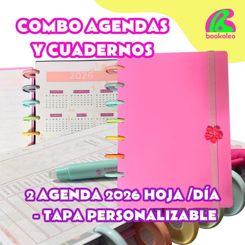 El Combo Agendas y Cuadernos de bookoleo es el pack perfecto para organizar tu año de forma práctica, creativa y súper completa. Incluye cuadernos A4 y A5 con sistema de discos inteligentes, dos agendas de página por día, seis lapiceras o resaltadores de regalo y seis calendarios 2026. Ideal para vender a estudiantes, docentes, emprendedoras y amantes del papel que buscan calidad, versatilidad y diseño. Todo con envío gratis a puntos de retiro en todo el país.