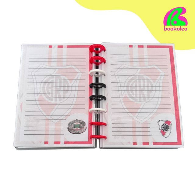El diseño exclusivo inspirado en River Plate celebra la pasión por la banda roja con una estética moderna, poderosa y fiel al espíritu millonario. Las tapas rígidas de polipropileno resistente son reutilizables, combinables y perfectas para usar con otros repuestos cuando lo necesites. Además, incluye una lapicera y elástico sujetador, para que tengas todo a mano en cualquier momento.